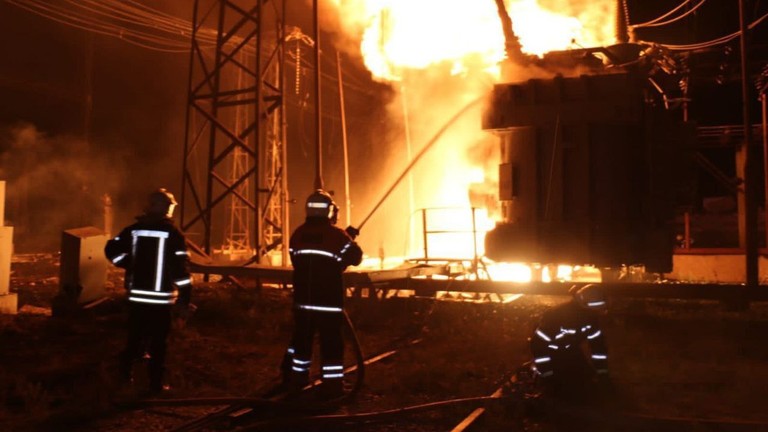 Footage circulating online shows the aftermath of the purported attacks, with firefighters trying to extinguish flames at what appear to be power plants.