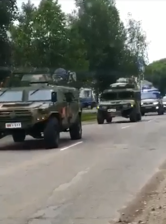 The images -- and some video which is still being analyzed -- show a small convoy . . . very small; of general military transport-type trucks, and some smaller vehicles akin to HUMVEES, traveling via public roads from Russia into Ukraine.