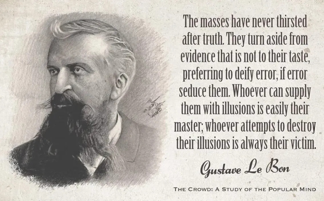 Mi is az a tömegalakulás valójában? A csoportképződés egy sajátos fajtája, amely az embereket radikálisan vakká teszi mindazzal szemben, ami ellentétes azzal, amiben a csoport hisz. Ily módon a legabszurdabb hiedelmeket is természetesnek veszik. Hogy egy példát mondjak: az 1979-es iráni forradalom idején tömeges formáció alakult ki, és az emberek elkezdték elhinni, hogy vezetőjük - Ayatollah Khomeini - arcképe látható a Hold felszínén. Valahányszor telihold volt az égen, az emberek az utcán mutogattak rá, megmutatva egymásnak, hogy pontosan hol látható Khomeini arca.