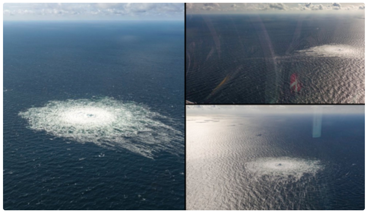 Nyilvánvaló szabotázs , szándékos robbantás ami az Északi Áramlat 1-et és 2-t, és megszakítja az Oroszországból Németországba irányuló közvetlen gázellátást